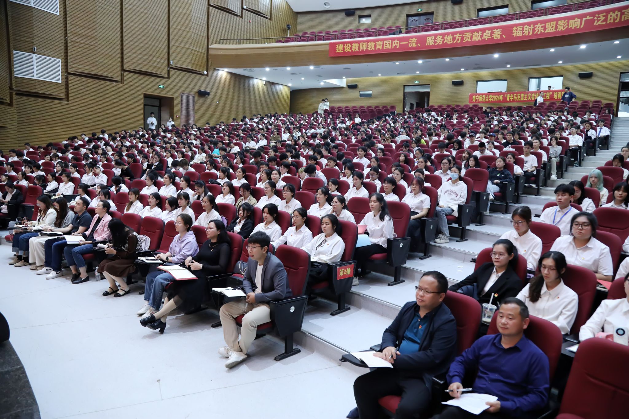 4月9日下午,必威西汉姆联在武鸣校区1号报告厅举办“广西三月三”铸牢中华民族共同体意识教育专题报告会,学校党委副书记隆广庆作专题报告。学校青马工程学员、各学院团委、学生会学生骨干、各级社团骨干、学院学生代表共1300余人聆听报告。