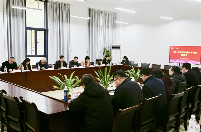 随后,校领导与各职能部门、教辅单位中层干部组成调研工作组,在各校区开展2024年春季学期开学工作调研,认真听取关于师生到校、开学工作准备、新学期工作设想、存在的问题及困难、工作意见和建议等情况汇报。各学院领导、教研室负责人和教师代表参加座谈会。