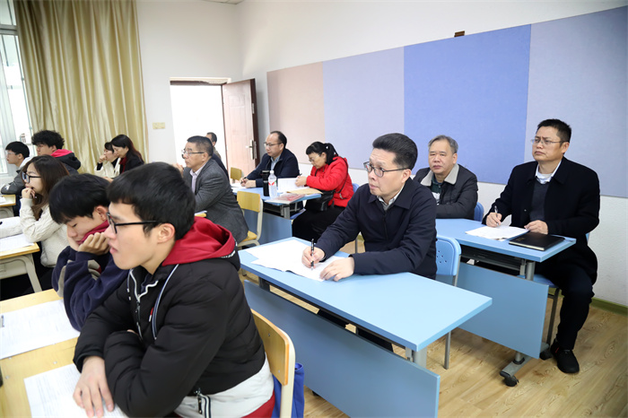 上午,校领导张鹏、李传起、侯代忠、隆广庆、徐书业、李兰荣、赵伟、李美清、梁家斌深入教学第一线,与同学们一起聆听开学第一课,了解教师授课和学生学习等教学工作开展情况。