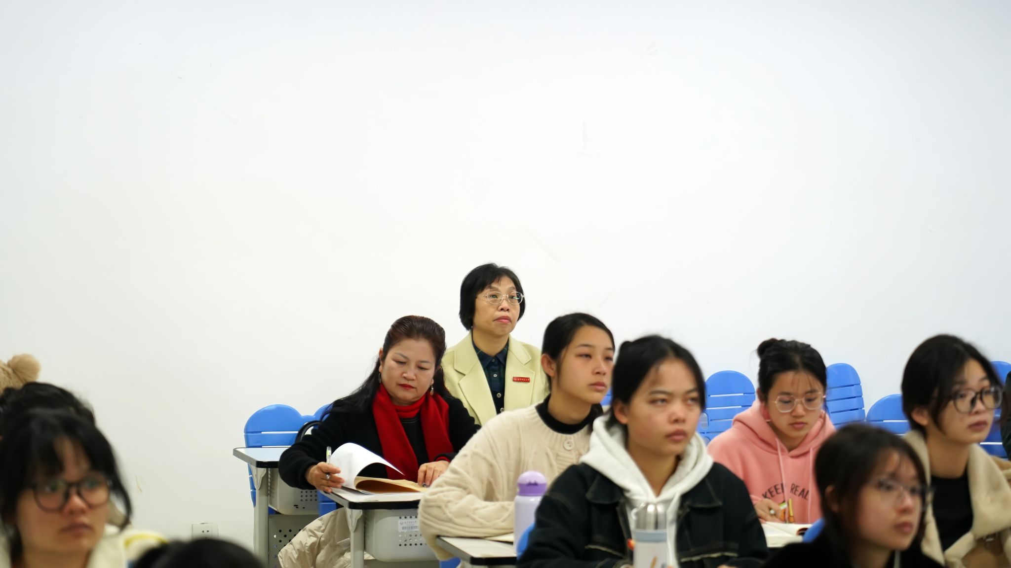 ▲校纪委书记李美清听课