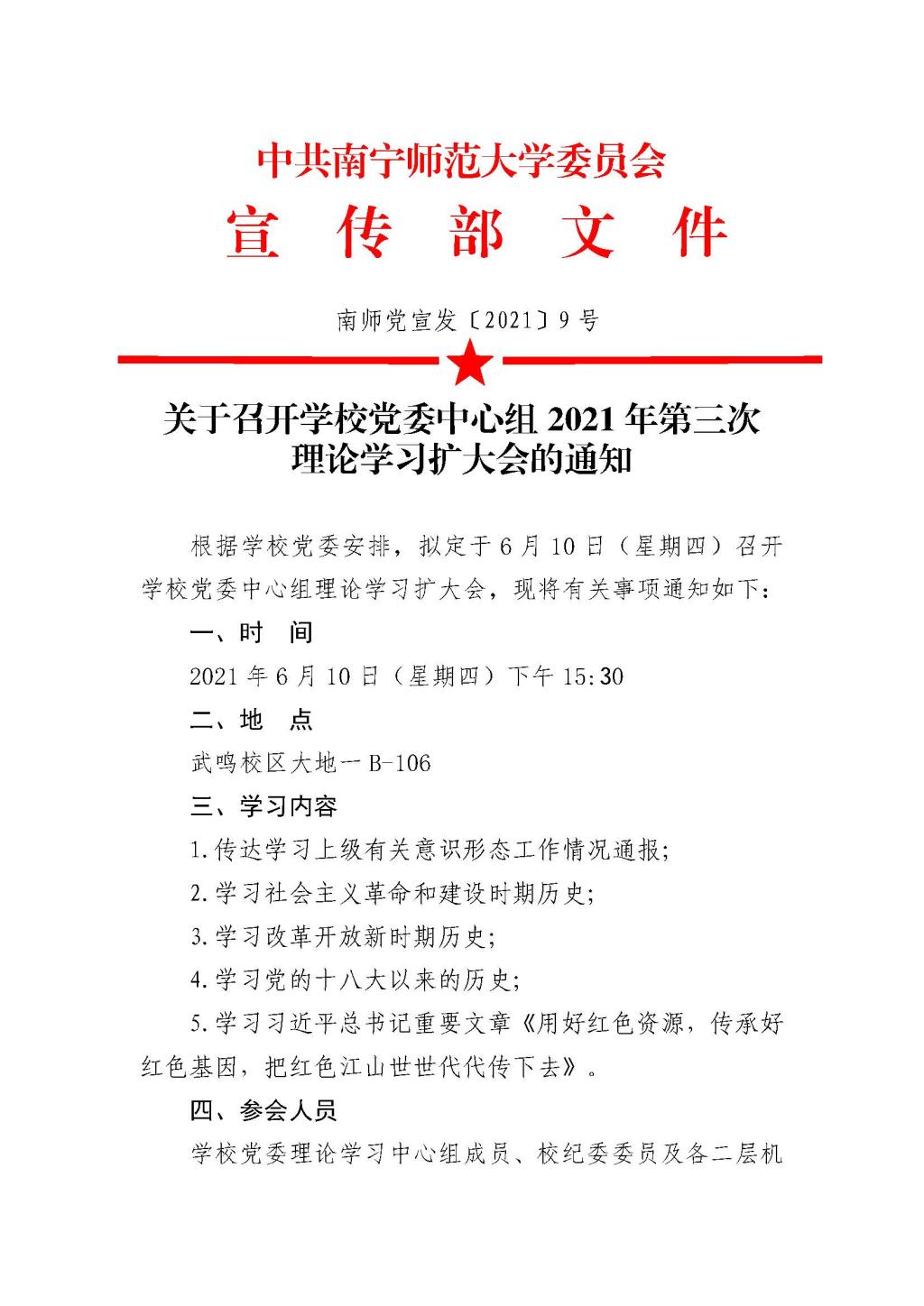 关于召开学校党委中心组2021年第三次理论学习扩大会的通知