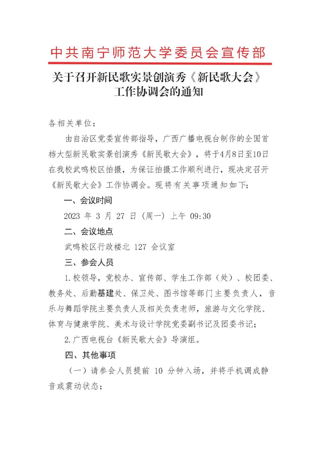 关于召开新民歌实景创演秀《新民歌大会》工作协调会的通知