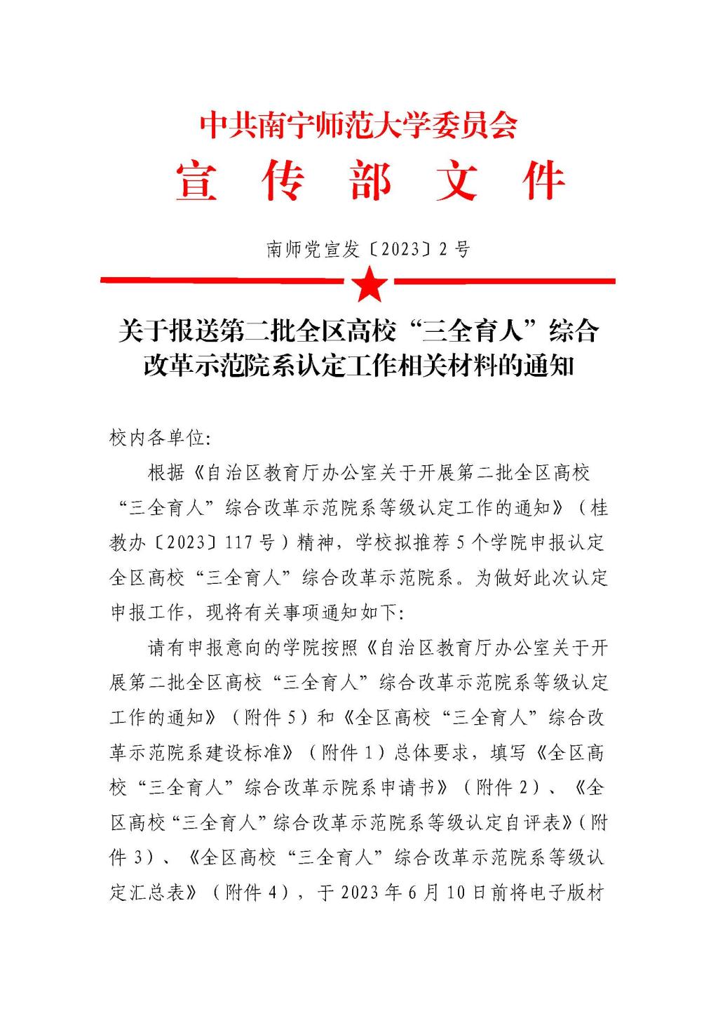 附件5:桂教办〔2023〕117号自治区教育厅办公室关于开展第二批全区高校“三全育人”综合改革示范院系等级认定工作的通知.pdf