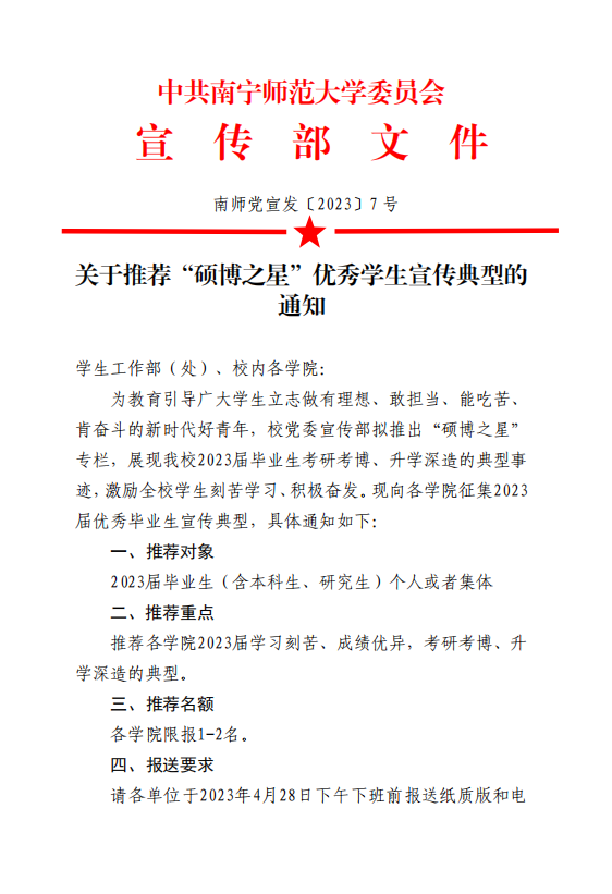 南师党宣发〔2023〕7号 关于推荐“硕博之星”优秀学生宣传典型的通知.pdf