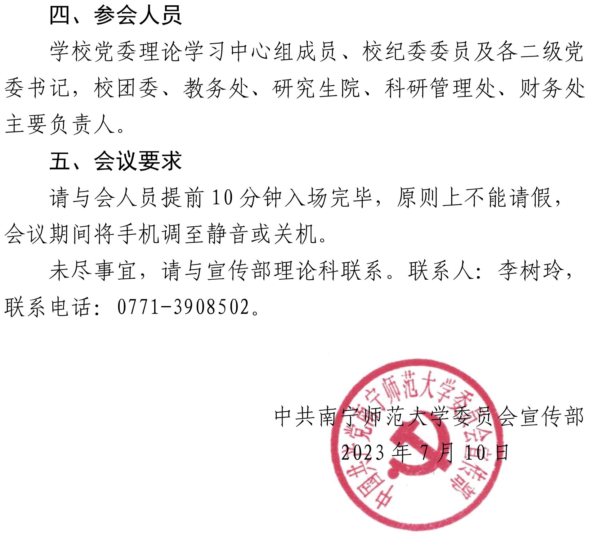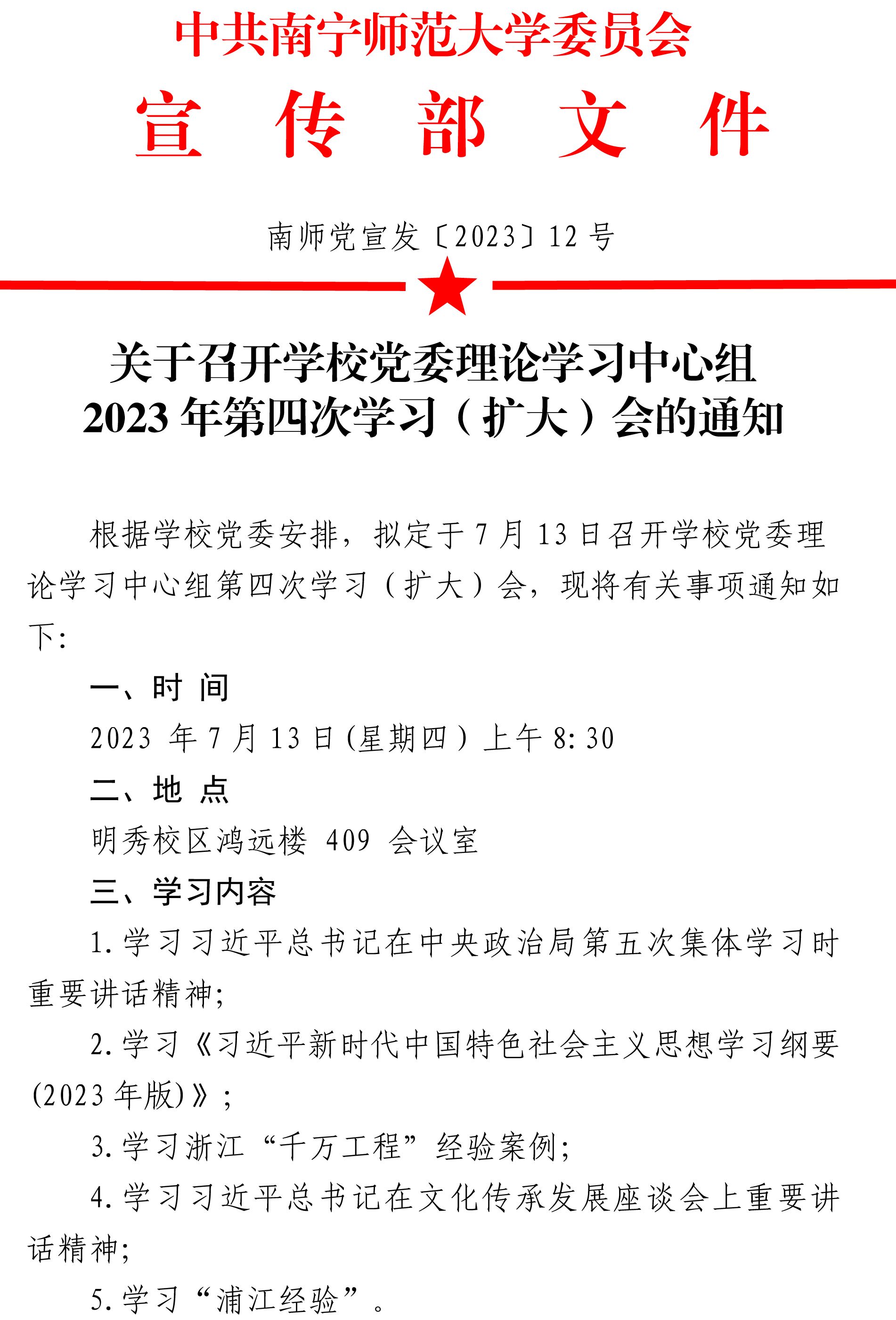 南师党宣发〔2023〕12号 关于召开学校党委理论学习中心组2023年第四次学习(扩大)会的通知
