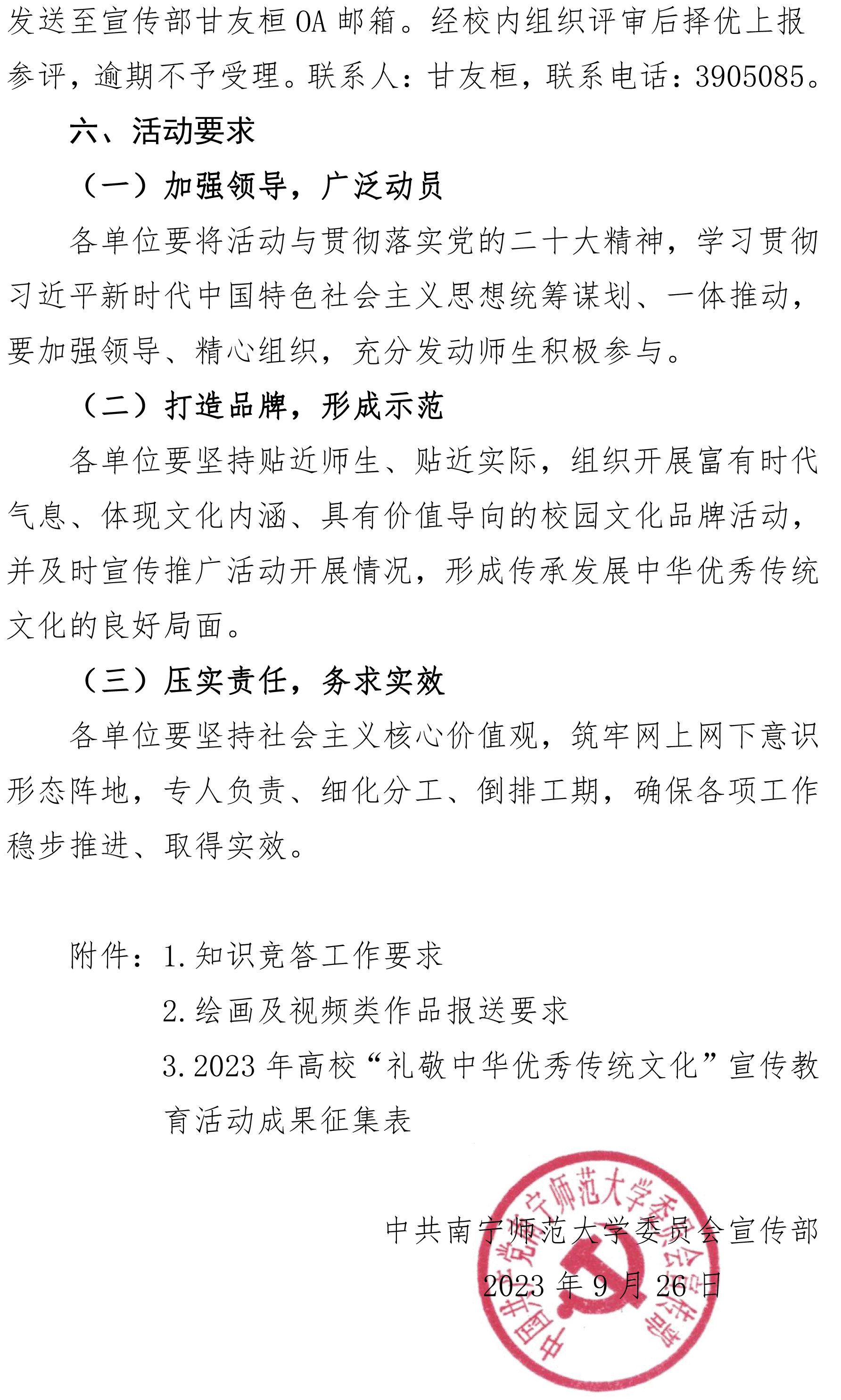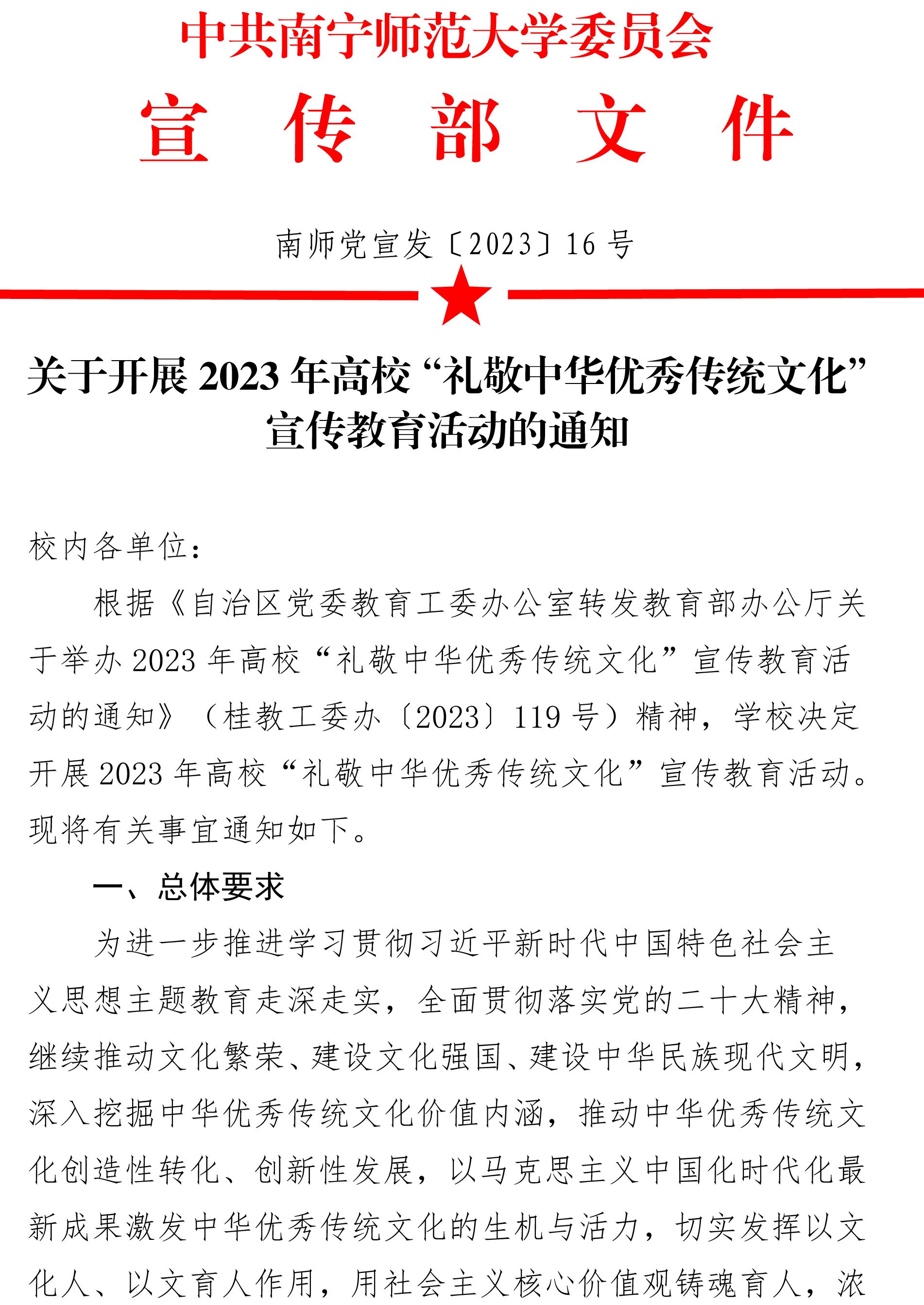 南师党宣发〔2023〕16号 关于开展2023年高校“礼敬中华优秀传统文化”宣传教育活动的通知